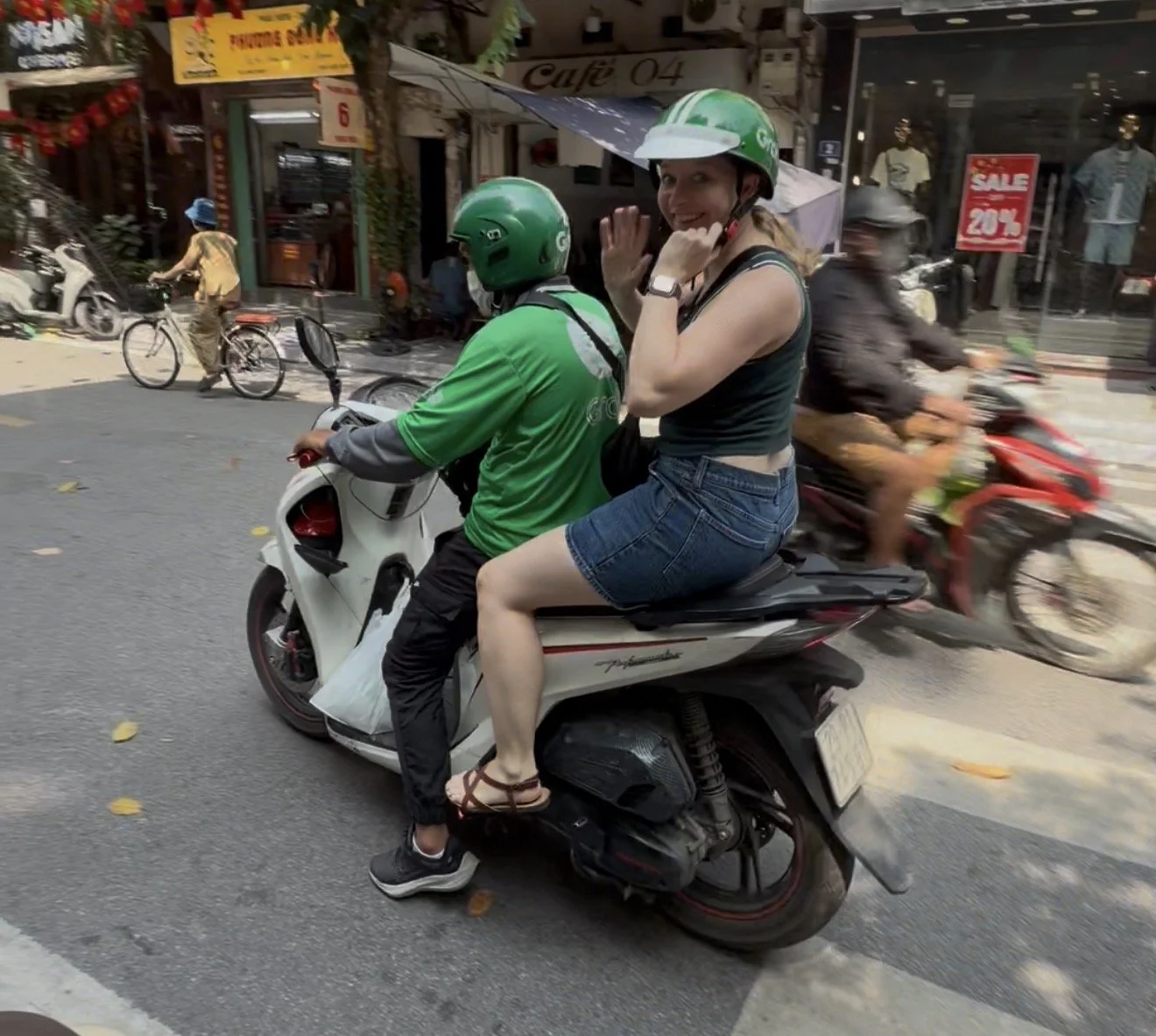 After staring at the streaming motorbikes weaving past each other like a school of metallic fish, I pitched an idea to Annie. The solution: Grab. If you haven’t used it, Grab is Southeast Asia’s answer to Uber, except in most cases you’re booking yourself a spot on the back of someone’s motorbike. A few taps and a couple of minutes waiting on the pavement, a local driver turns up, hands you a helmet (sometimes with the strap barely holding on!), and off you go through the city for less than the cost of a packet of crisps at home.