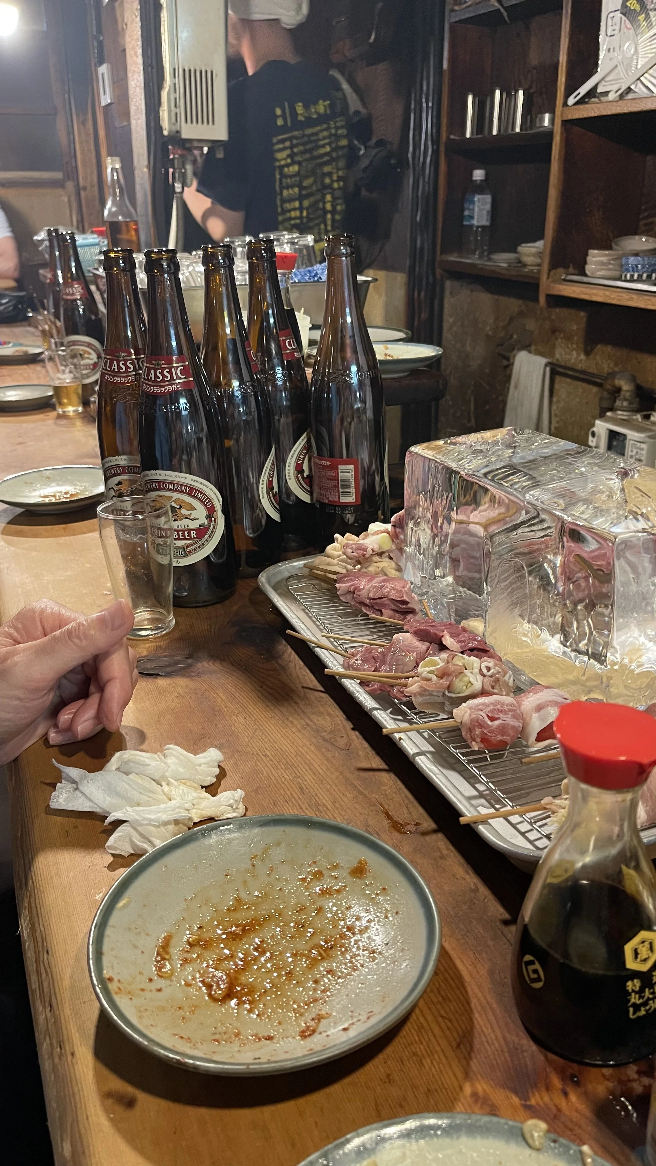 We found a gem - cash only, walls stained with decades of grease, serving skewers grilled over open flame and dishes ladled from a broth that had clearly been bubbling away for years. When you’re done, the chef simply counts the skewers and beer bottles and gives you a total. Im still not sure this place even has a name, or exists on google. But from the images i’ve displayed, you may just be able to find it.